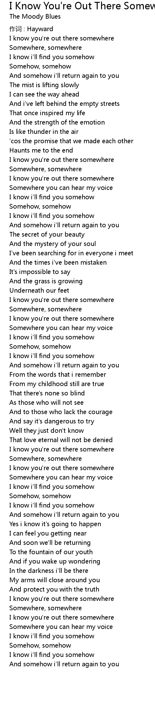 | I know you' re out there somewhere | |