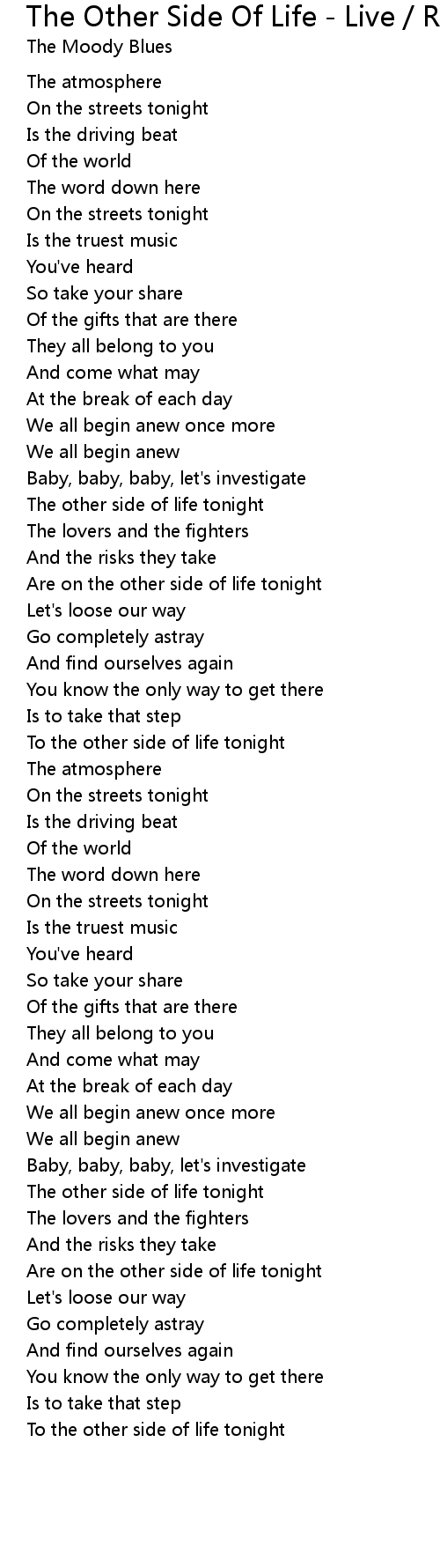 To the other side of life tonight |