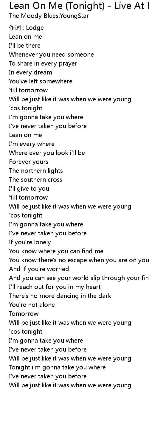 | Song | Lean On Me (Tonight) - Live At Red Rocks/1982 |