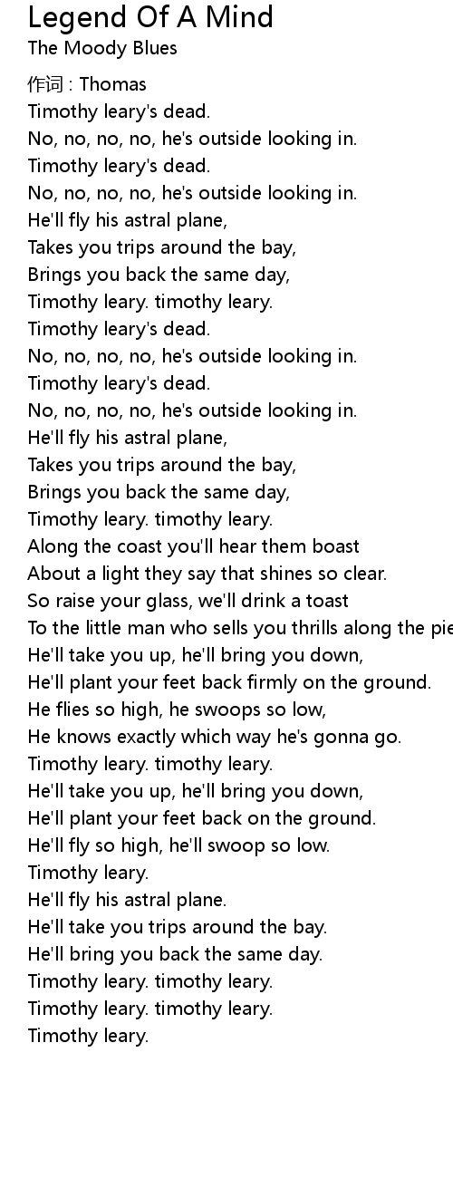 | Song | Legend Of A Mind |
