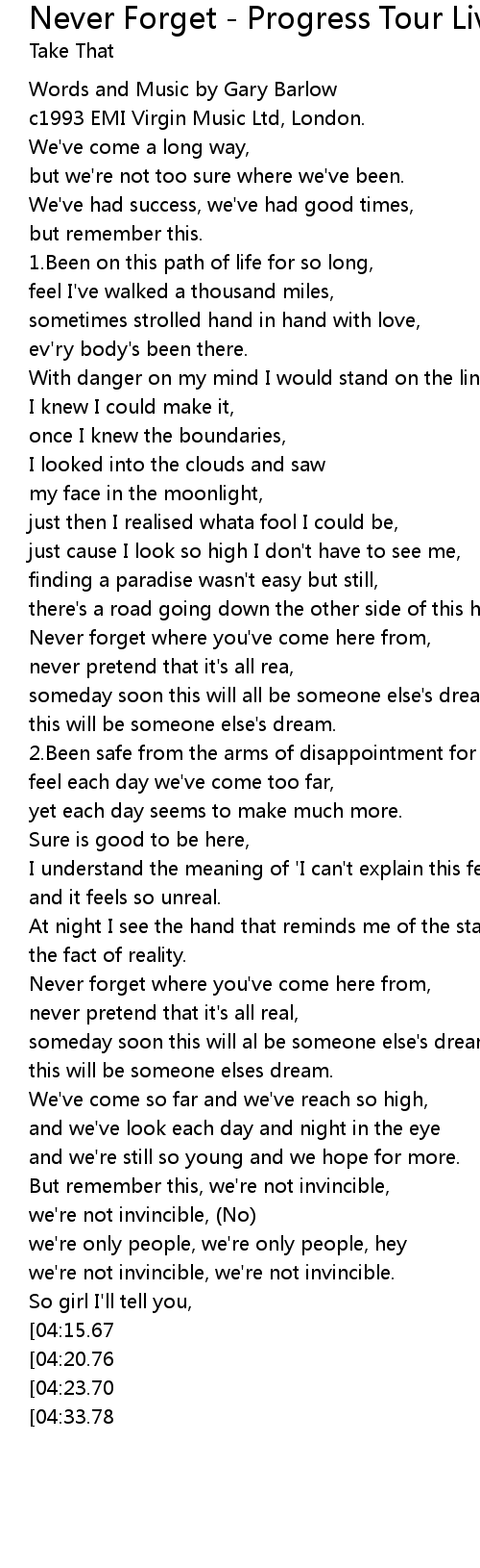 Words and Music by Gary Barlow |