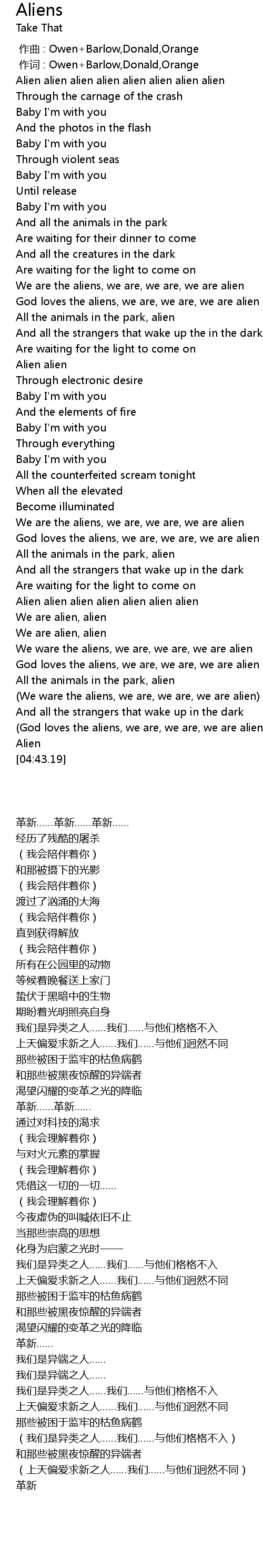 | [04:33.20] | (God loves the aliens, we are, we are, we are alien) |
