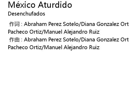 | [00:00.00-1] | 作曲 : Abraham Perez Sotelo/Diana Gonzalez Ortiz/Juan Jose Pacheco Ortiz/Manuel Alejandro Ruiz |