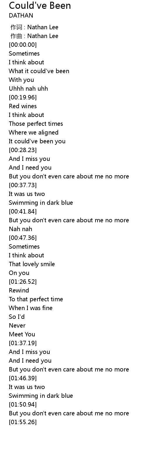 | [00:15.28] | What it could' ve been |
