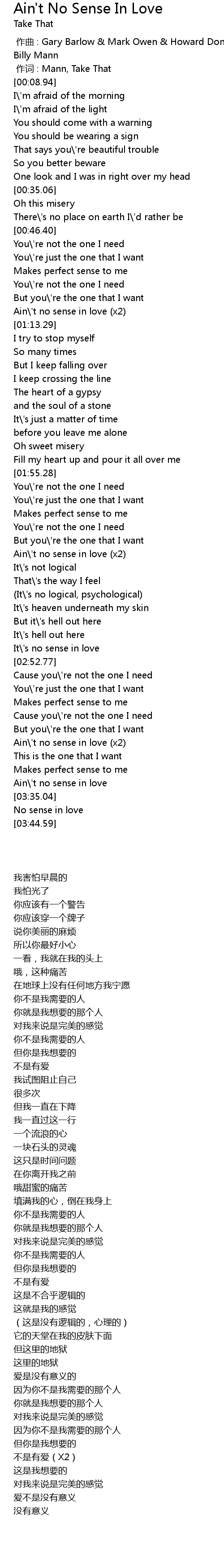 | [03:16.15] | Ain\'t no sense in love (x2) |
