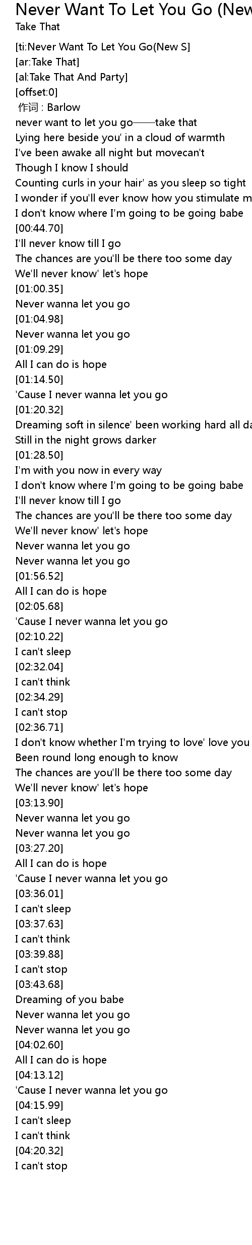 | Song | Never Want To Let You Go (New Studio Mix) - New Studio Mix |