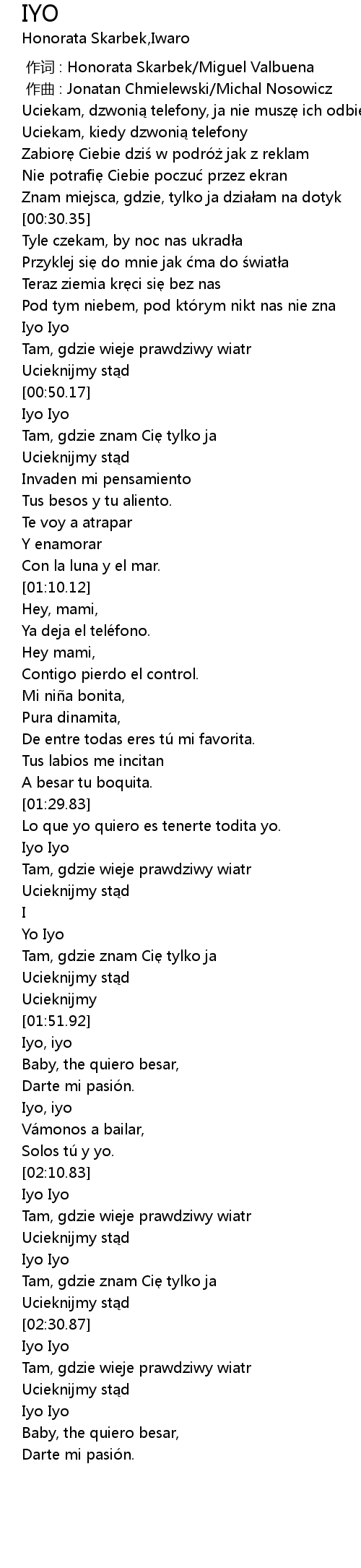 | [00:00.00] | 作词 : Honorata Skarbek/Miguel Valbuena |