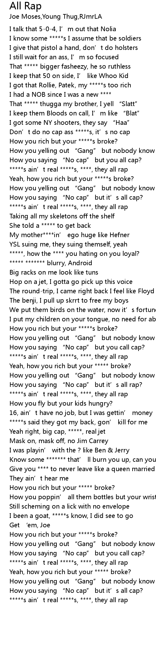 | [01:50] | How you saying " No cap" but it' s all rap? |