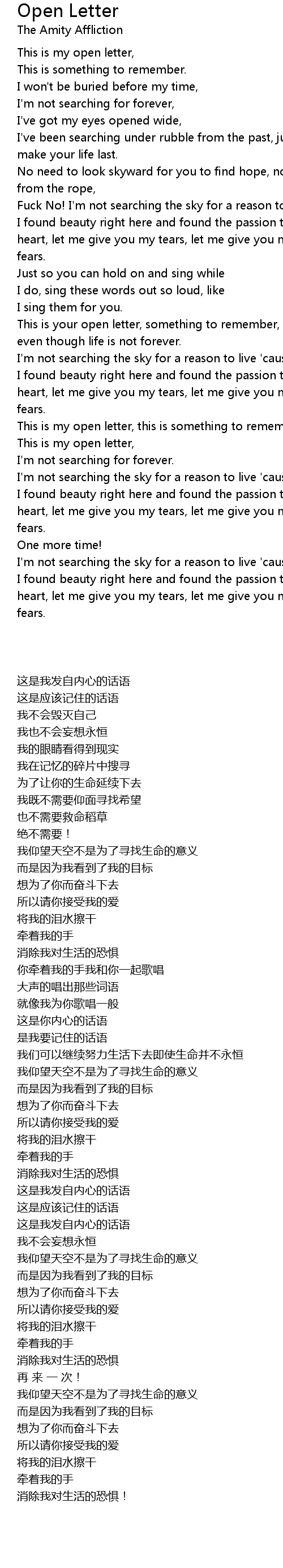 This is your open letter, something to remember, we can still keep on fighting even though life is not forever.