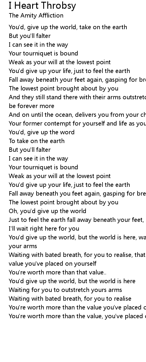 You'd give up the world, but the world is here, waiting for you to outstretch your arms |
