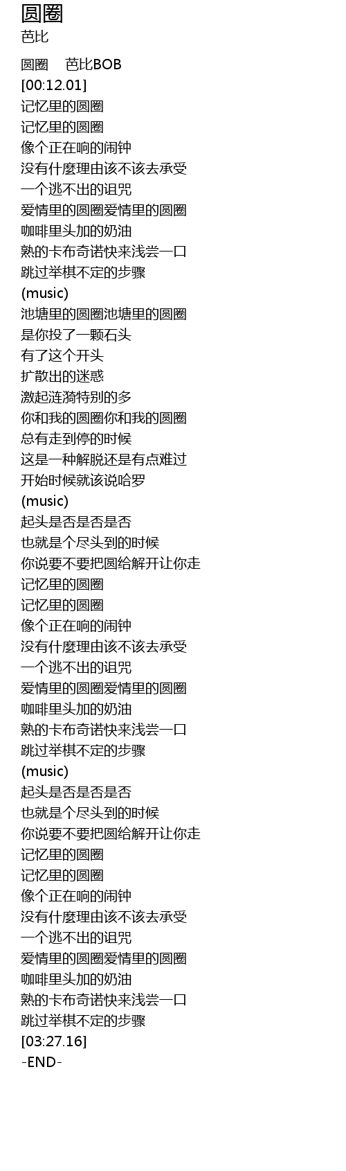 | [00:03.53] | 圆圈 芭比BOB |
