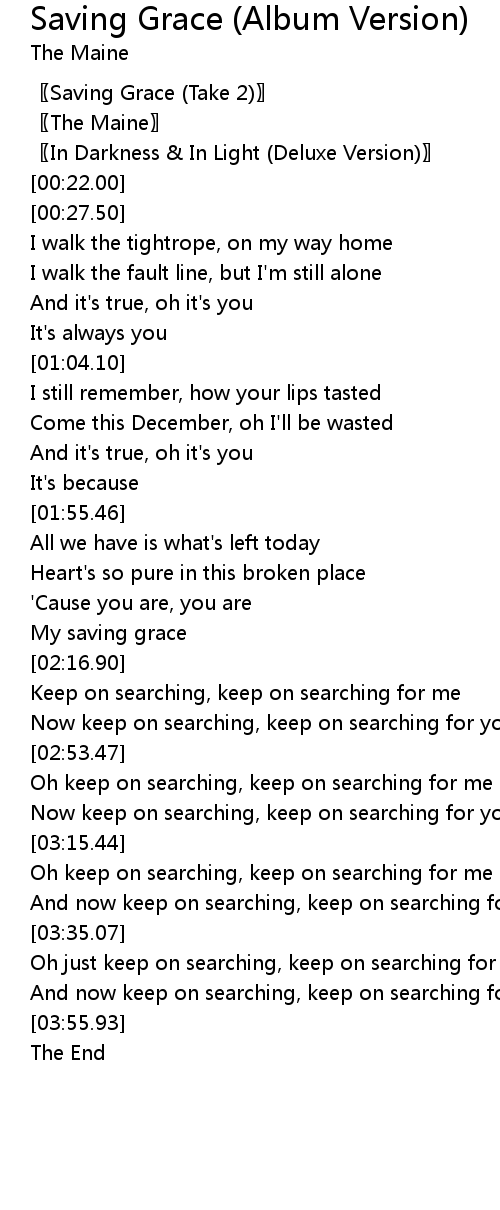 | [00:05.50] | 〖Saving Grace (Take 2)〗 |