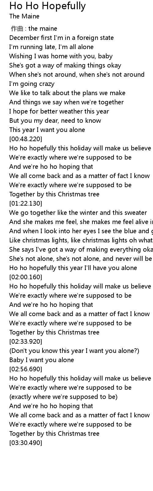 | [02:00.870] | Ho ho hopefully this holiday will make us believe that |
