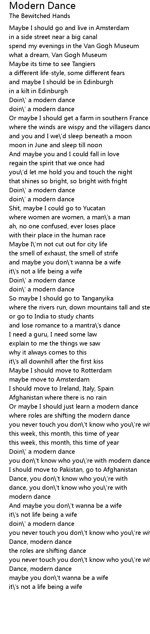 Modern Dance Lyrics