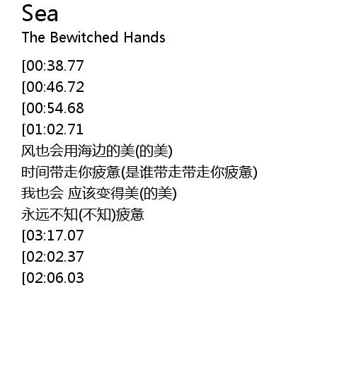 | [01:11.16] | fēng yě huì yòng hǎi biān de měi de měi |