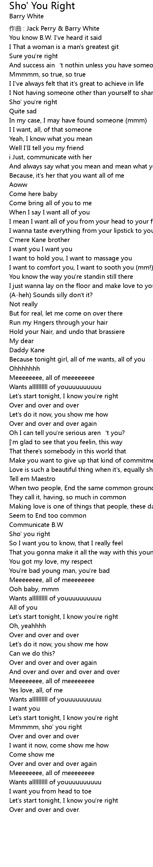 | zuò qǔ : Jack Perry Barry White | |
