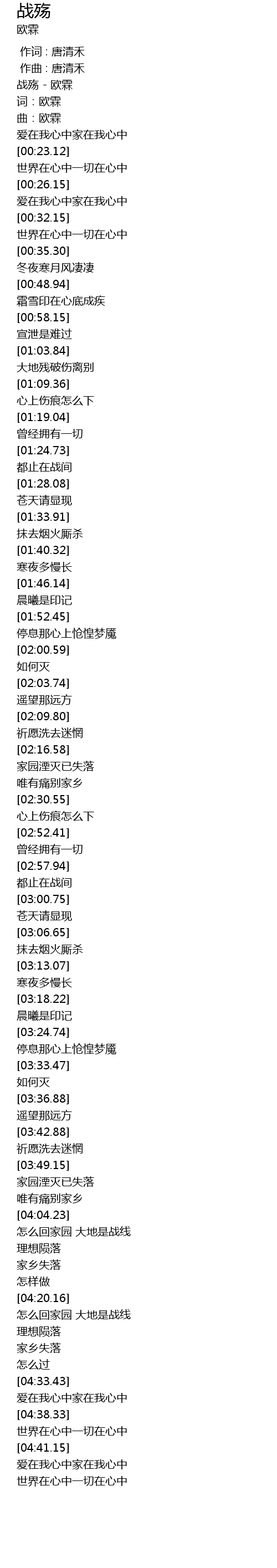 | [00:00.00] | 战殇 - 欧霖 |