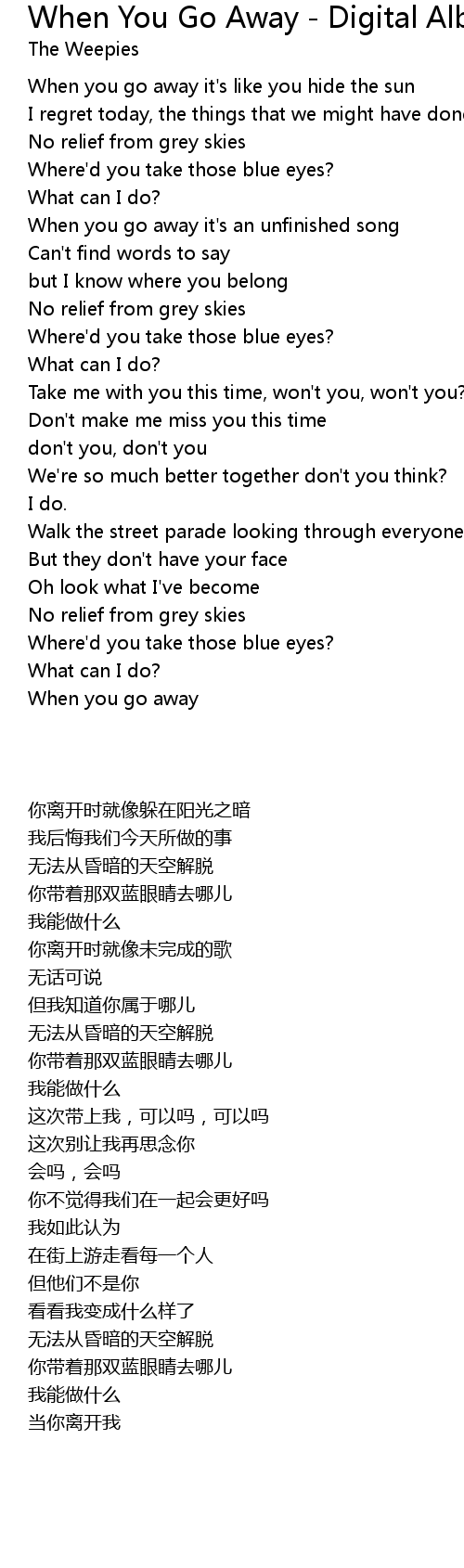 When you go away it's an unfinished song |