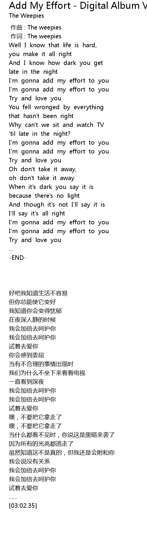 | [00:38.15] | I' m gonna add my effort to you |