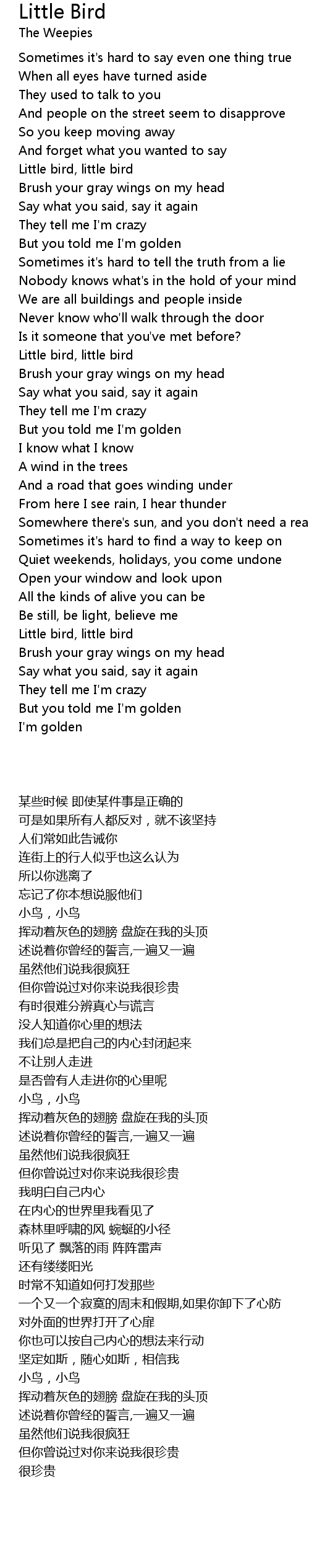 | [02:49.329] | Little bird, little bird |