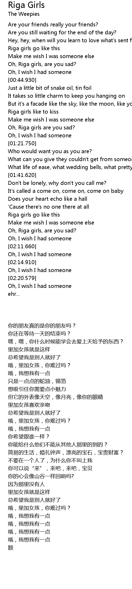 | [02:03.500] | Oh, Riga girls, are you sad? |