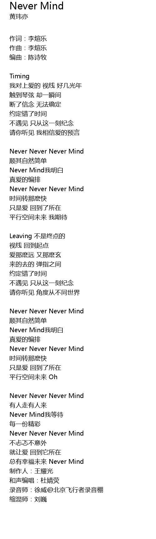 | zǒng yǒu xìng fú wèi lái Never Mind | |
