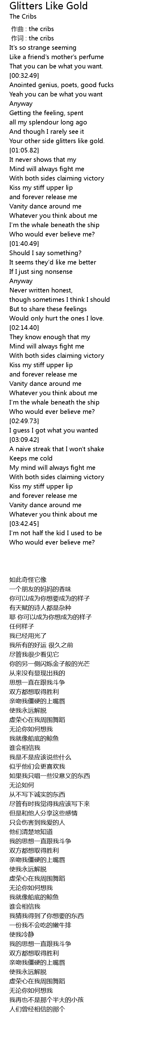 | [00:01.00] | 作词 : the cribs |