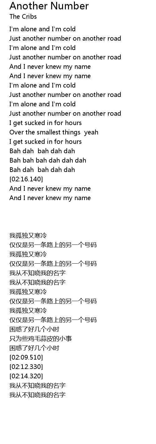 | [01:39.350] | Just another number on another road |