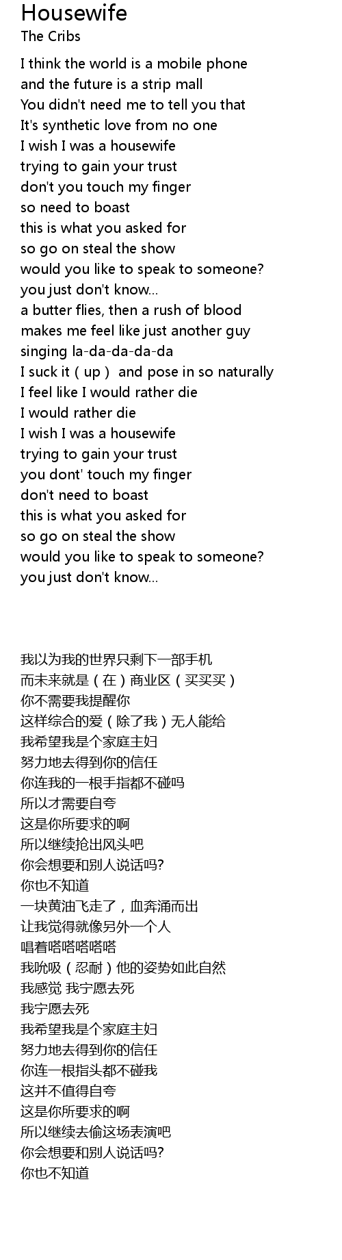 | [02:11.73] | I wish I was a housewife |