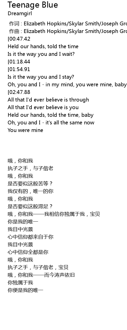 | [00:31.61][00:47.42][01:19.43][02:55.89] | Oh, you and I |