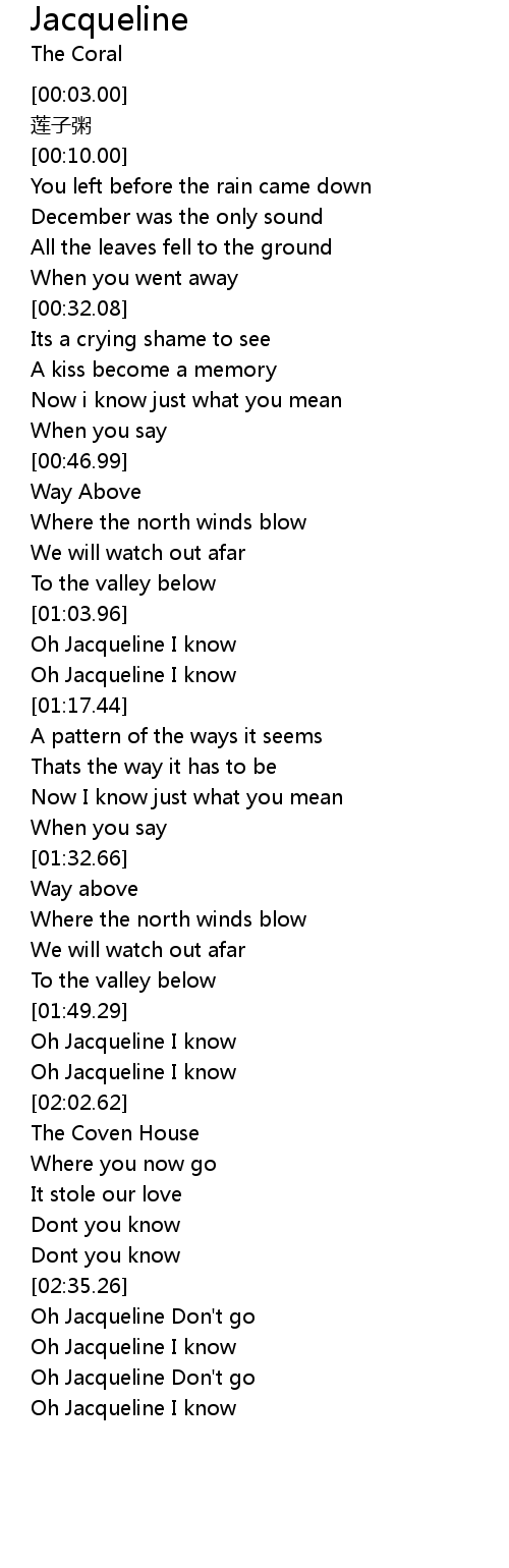 | [02:43.09] | Oh Jacqueline I know |