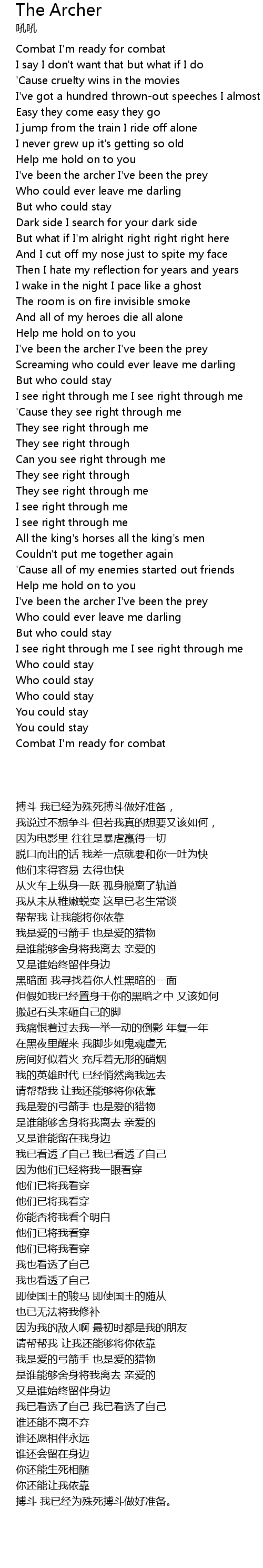 | [01:50.356] | I've been the archer I've been the prey |