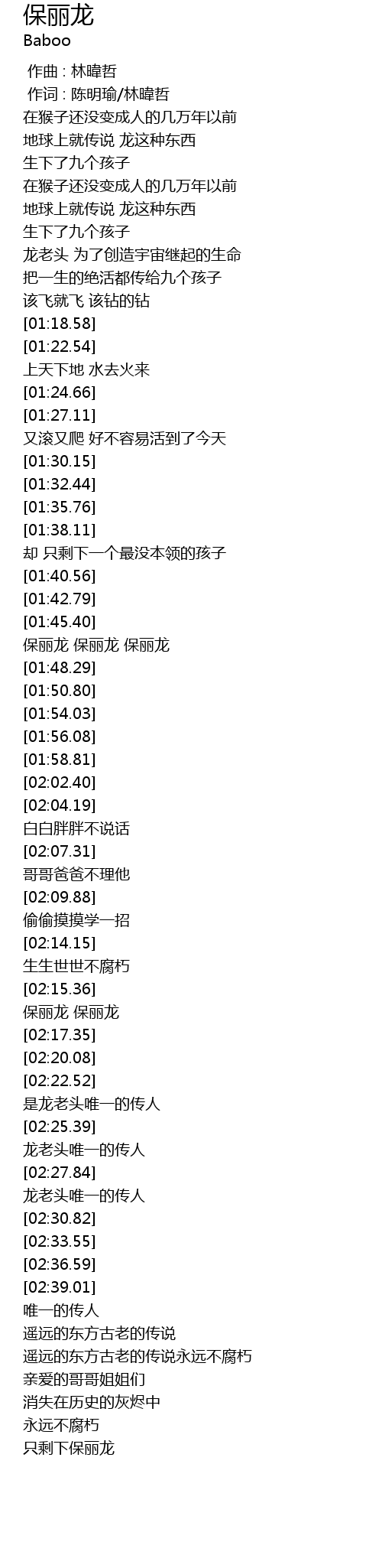 | [02:16.80] | bao li long bao li long |