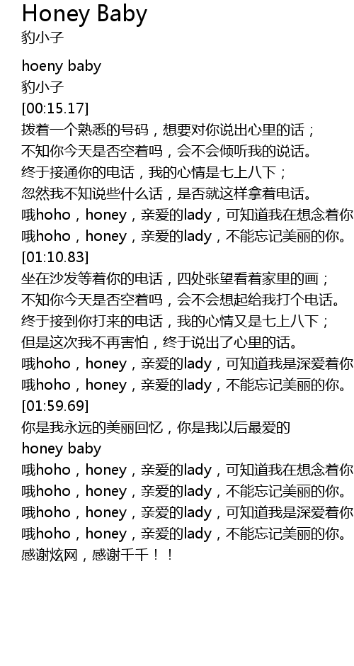 | [02:13.79] | honey baby |