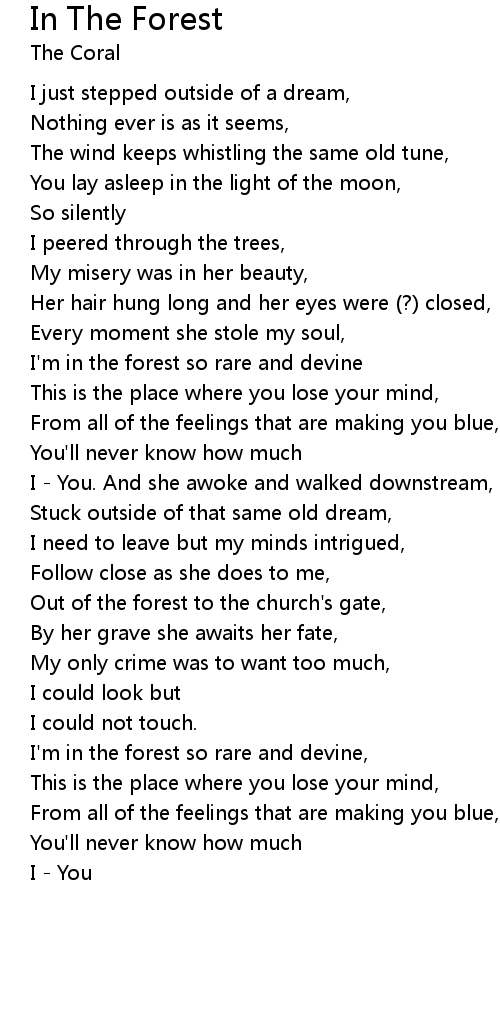 I'm in the forest so rare and devine, |