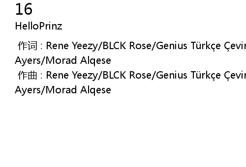 | [00:00.00-1] | 作曲 : Rene Yeezy/BLCK Rose/Genius Türkçe Çeviri/Muhammed Ayers/Morad Alqese |