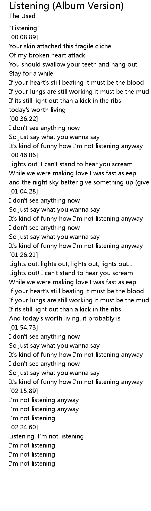 It's kind of funny how I'm not listening anyway |