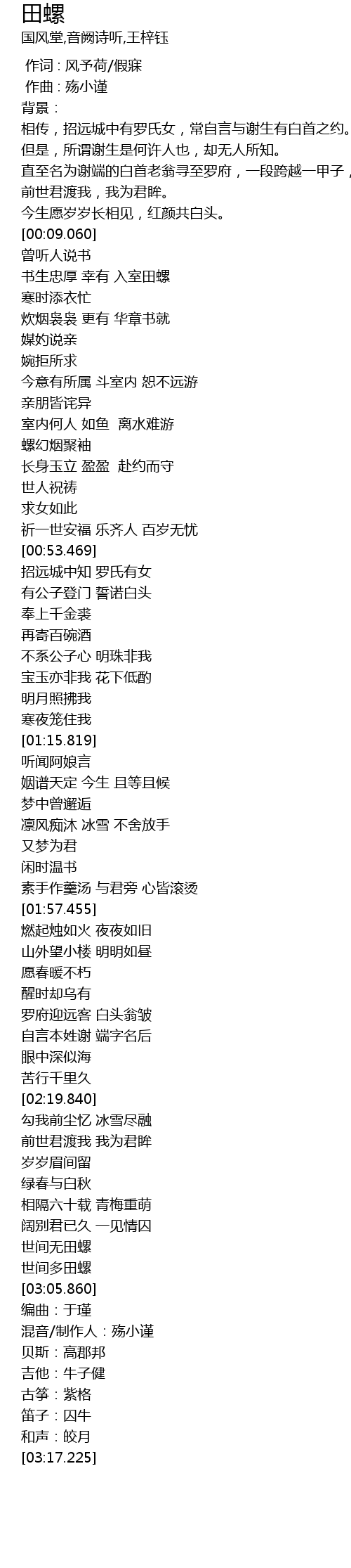 | [03:03.126] | 世间多田螺 |