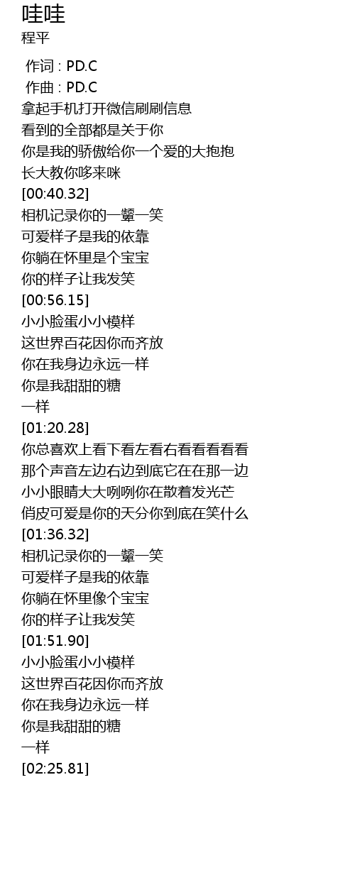 | [00:32.73] | 你是我的骄傲给你一个爱的大抱抱 |