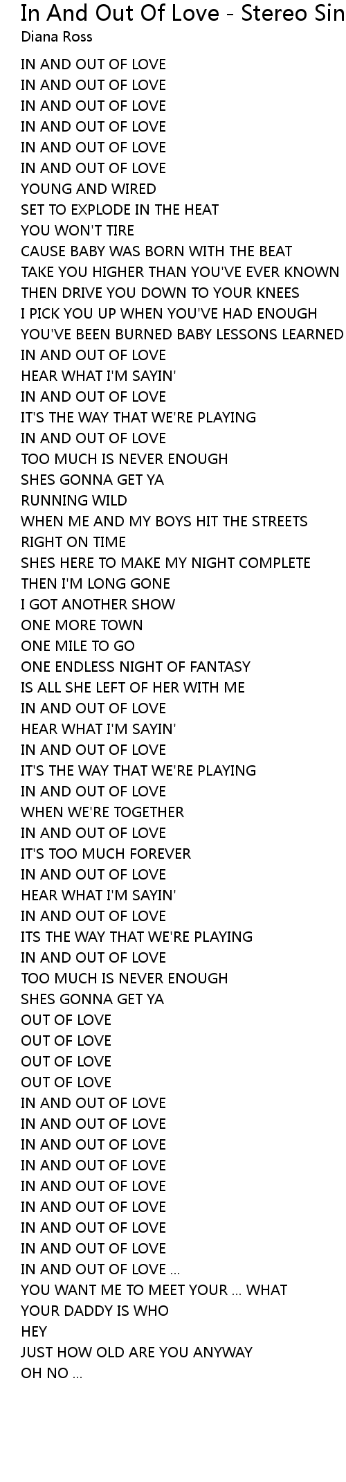 IN AND OUT OF LOVE ... |