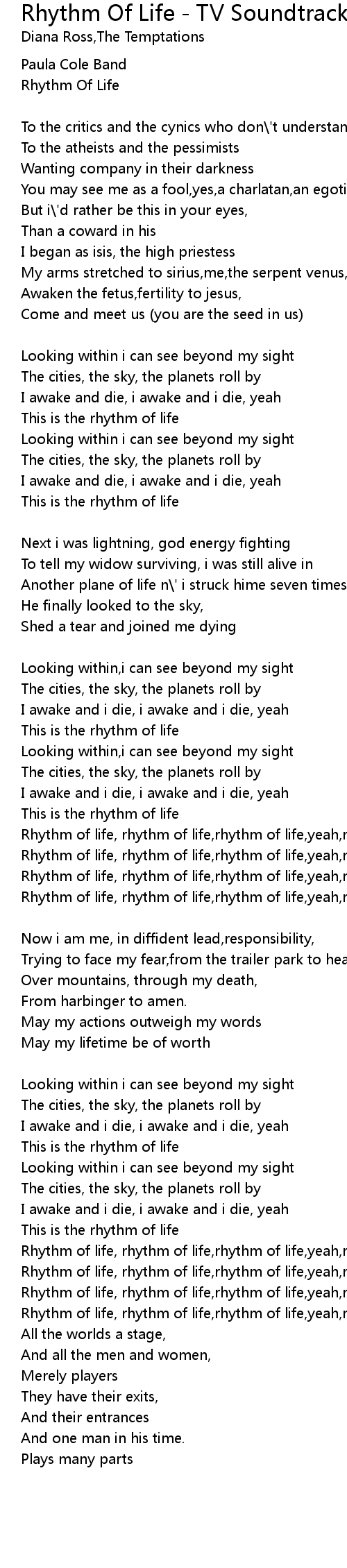 Rhythm of life, rhythm of life,rhythm of life,yeah,rhythm of life |