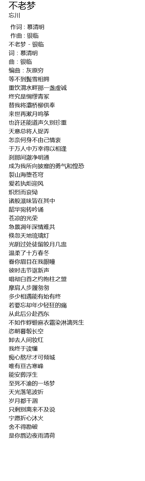 | [02:46.29] | 不如作蜉蝣麻衣霜染淋漓死生 |