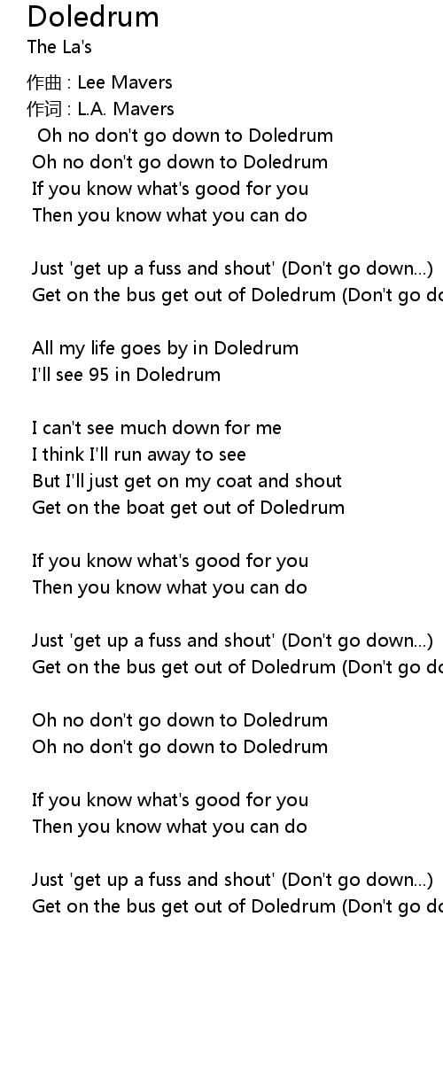 | Get on the bus get out of Doledrum (Don't go down...) |
