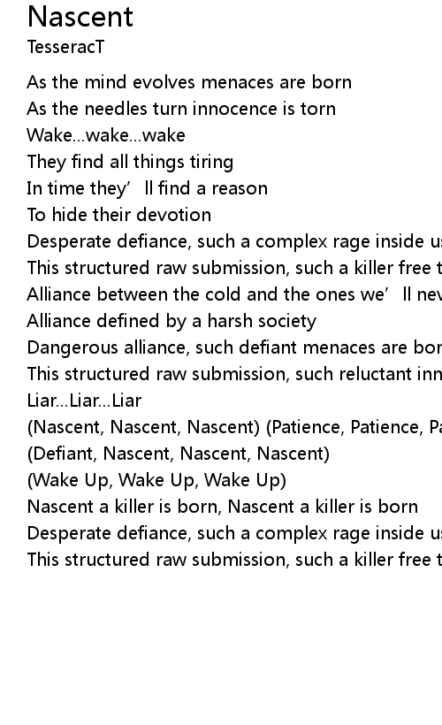 | Nascent, Nascent, Nascent Patience, Patience, Patient | |