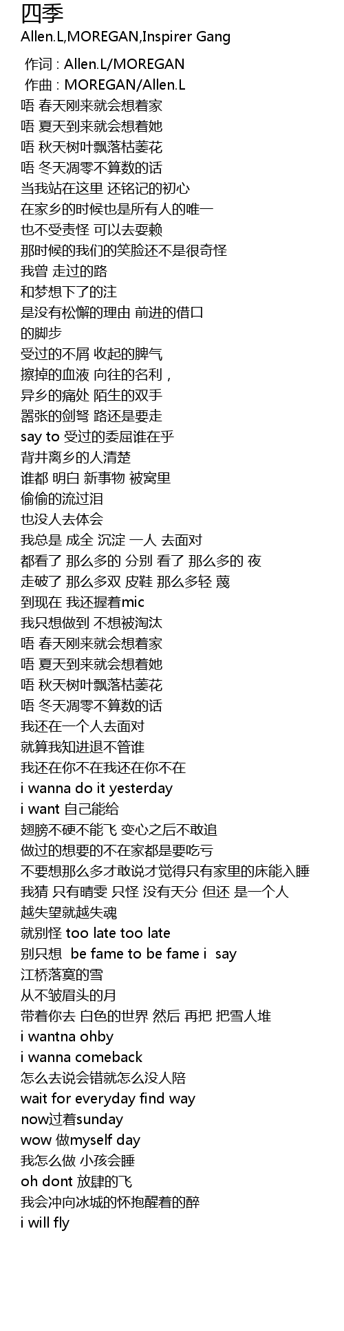 | [00:00.000] | 作词 : Allen.L/MOREGAN |