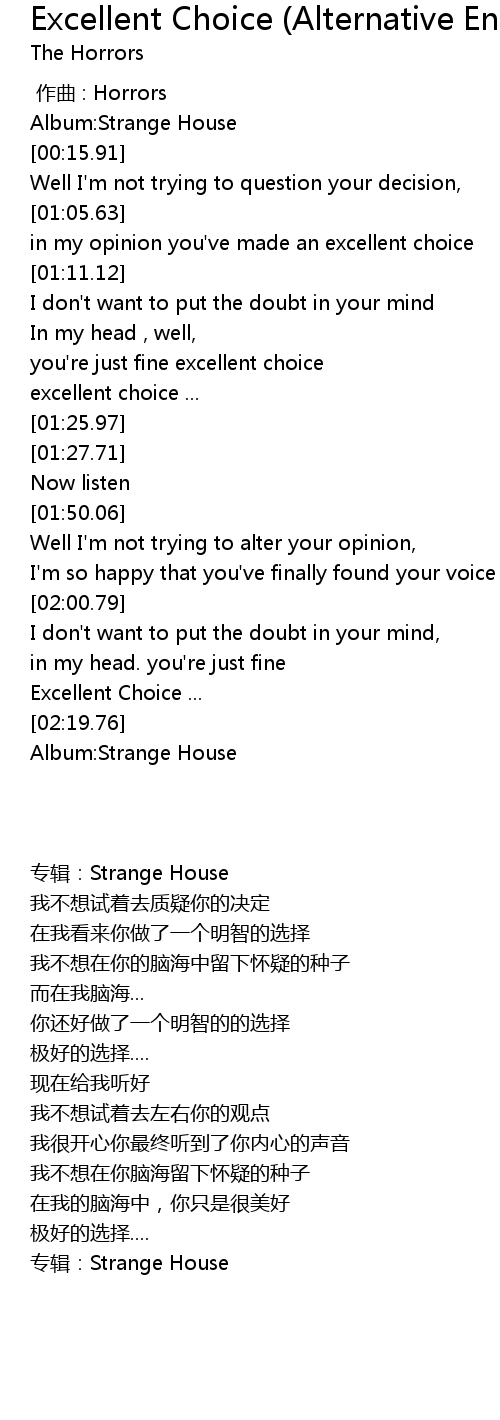 | [01:06.81] | in my opinion you' ve made an excellent choice |