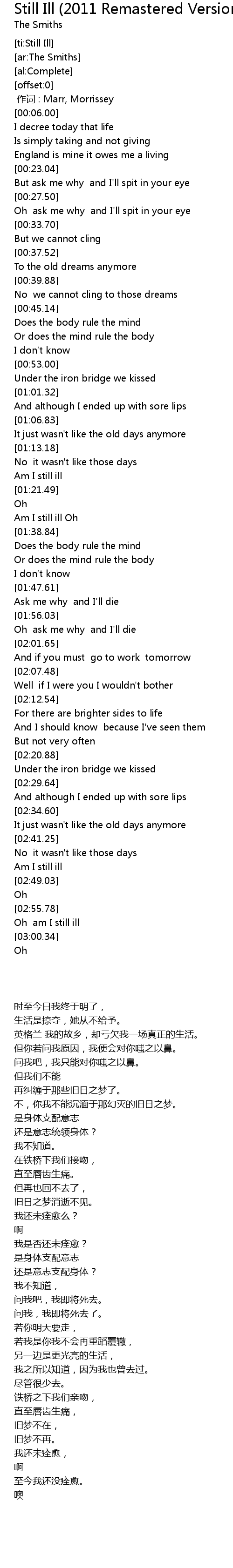 | [00:00.00] | 作词 : Marr, Morrissey |