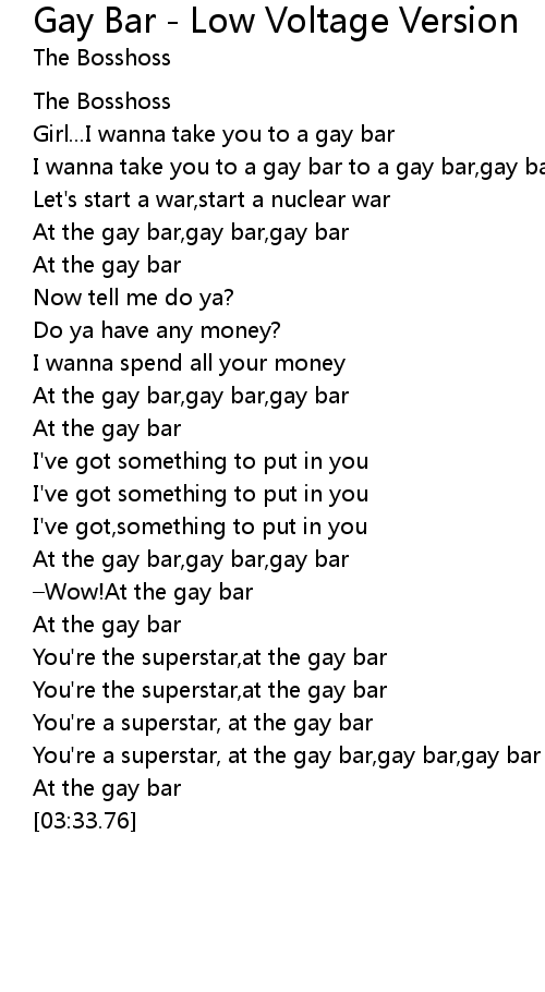 | [00:59.94] | At the gay bar, gay bar, gay bar |