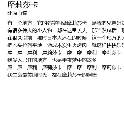 | 有一个地方 它的名字叫做摩莉莎卡 是我的兄弟姐妹 永远不会忘记的家 | |