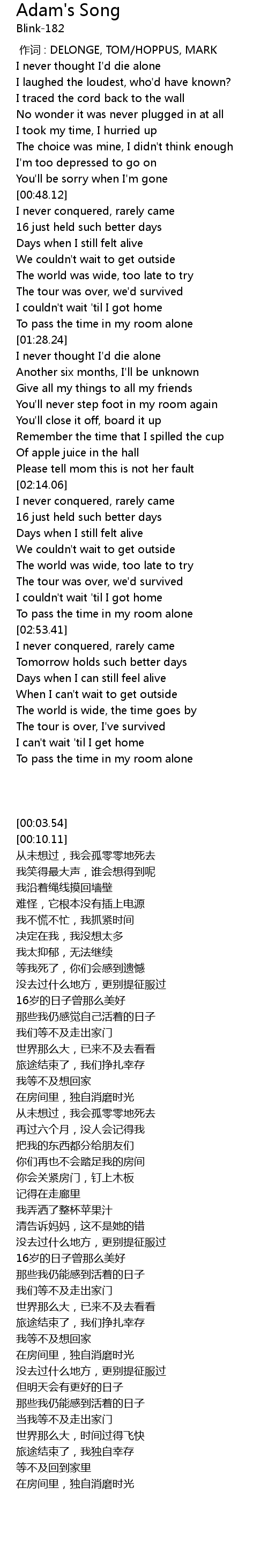 | [00:00.00] | 作词 : DELONGE, TOM/HOPPUS, MARK |